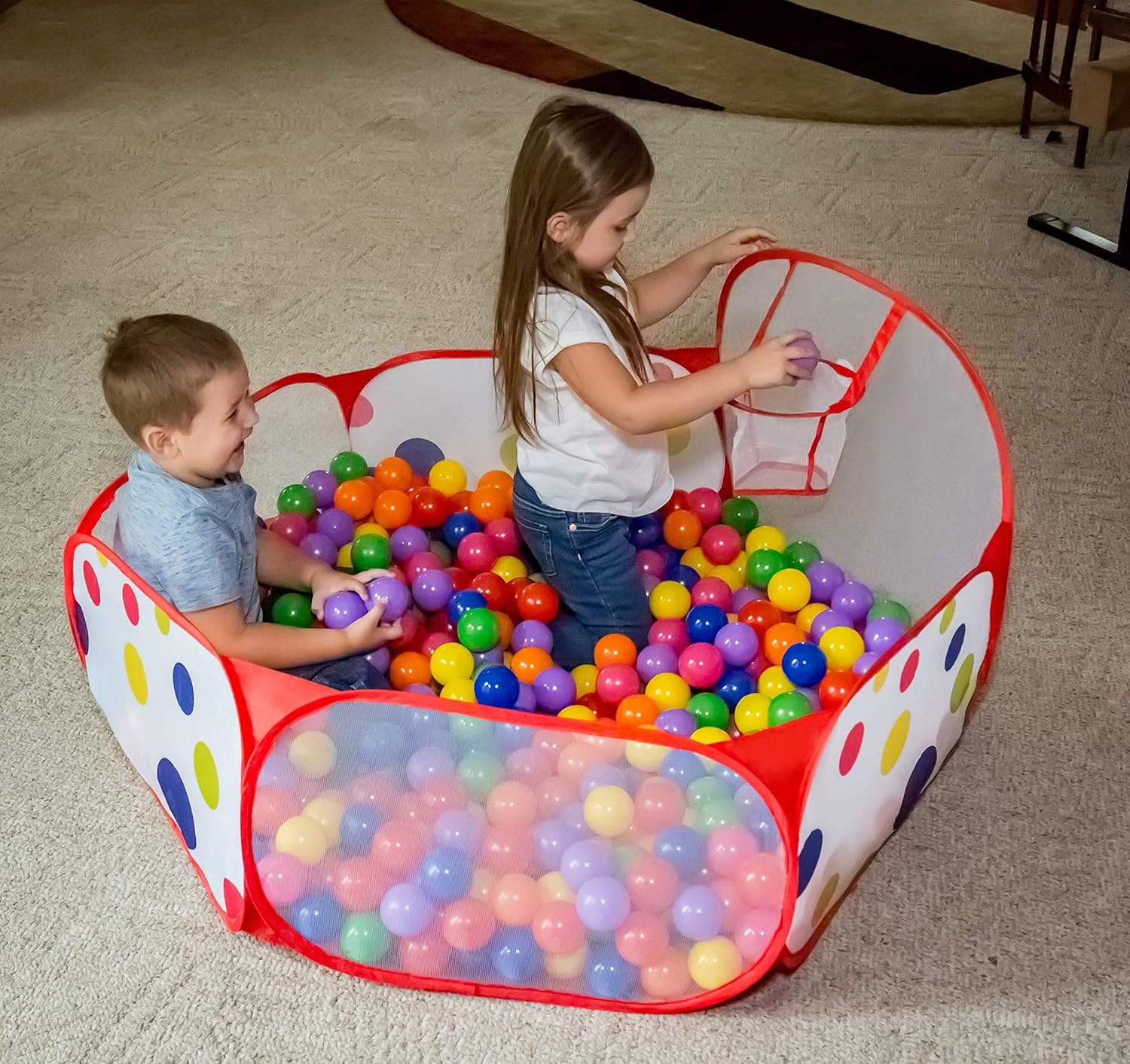 Red Polka Dot theme play pen for children with safety meshing for child play visibility.