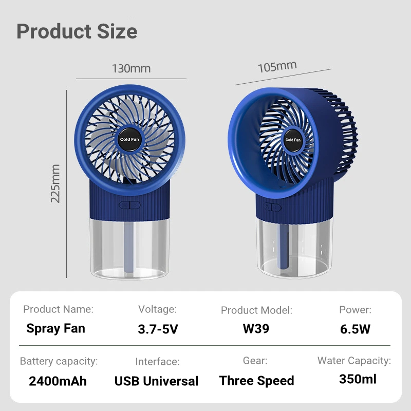 - 350ml Water Tank: Equipped with a sizable water tank for extended use without frequent refills, ensuring continuous cooling and humidification.